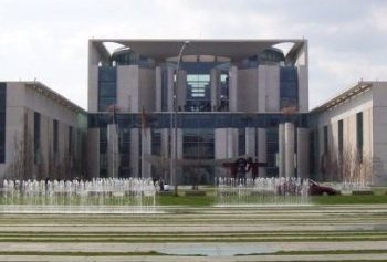 Oben: Das Bundeskanzleramt von vorn.
