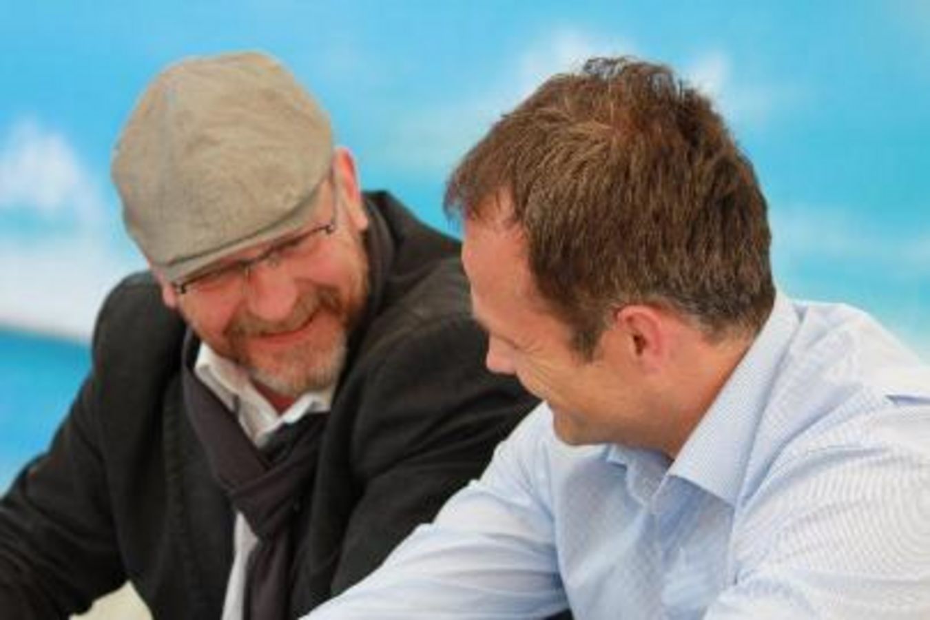 Unten: Der Landtagsabgeordnete nutzt die Gelegenheit für lockere Gespräche.
