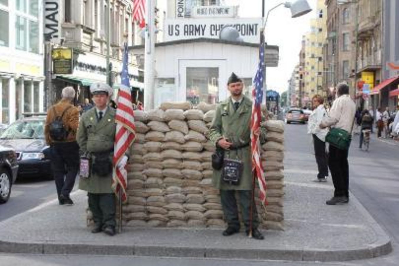 Mitte: Checkpoint Charlie vorm Mauermuseum.