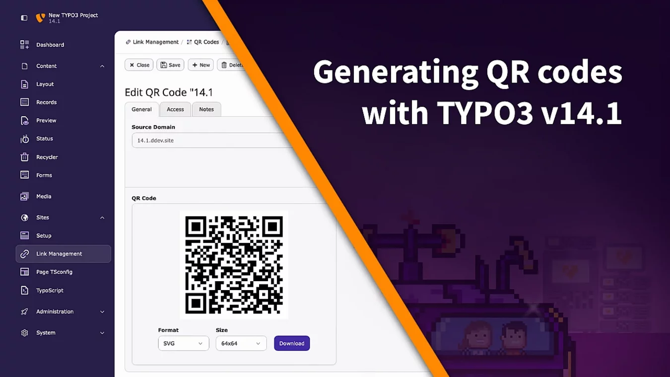 With version 14.1 editors now have the ability to generate and download QR codes and have them link back to pages in the page tree.